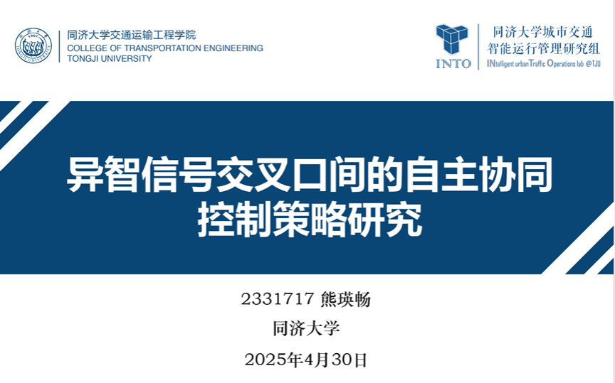 熊瑛畅的研究聚焦于城市路网中传统固定配时信号交叉口与智能信号交叉口并存的过渡期,针对 AI 控制交叉口对邻近交叉口信号控制效果的影响及成功部署 AI 交叉口所需的周围环境控制前提条件展开研究。提出新型自适应交叉口信号控制算法 —— 下游绿波感知交叉口控制器(DGWAIC),该算法将上下游绿波条件识别与奖励机制整合到近端策略优化(PPO)框架中。设计 “1+4” 实验场景,在协调与非协调控制场景下,将所提方法与单一奖励驱动的 DRL 控制策略进行比较分析。实验表明,奖励驱动的 AI 控制策略存在自私和激进行为,需考虑邻近传统交叉口的传播效应;DRL 控制交叉口的适应性和协调能力有局限性,在四周具有协调固定配时交叉口控制的环境中部署 DRL 控制器可进一步发挥其优势。DGWAIC 在协调环境中能显著提升交通流效率,减少旅行时间、延迟和停车次数,促进绿波形成,其机制为提升本地和周围交叉口交通性能提供了新思路,实际部署 DRL 控制交叉口时需评估周围固定时间交叉口以确保提供适当相位差,促进二者有效合作。