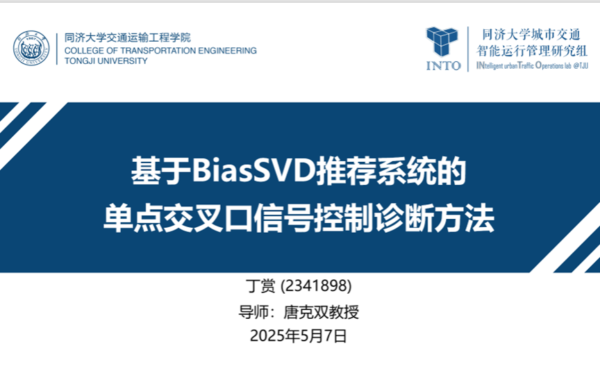 丁赏同学汇报的主题是基于Bias-SVD的单点信号控制交叉口运行问题诊断推荐系统,主要阐述了研究部分内容的变动以及进展。在方法论层面,首先,研究将原本的延误计算从韦伯斯特法更改为HCM2010手册中的延误计算形式。第二,研究将推荐系统搜索历史数据的范围进行了更改,由原先查找欧式距离最相似场景改为查找欧氏距离最近的前5个场景,并将场景按距离进行加权排序后进行下一步统计。第三,研究将成本效益筛选方法进行更改,原方法为了统一量纲进行了缩放操作导致数据的原始特征被忽略,新方法改为先筛选效益为正的历史数据,再将成本从小到大排序,选取前20%的数据作为有效样本进行统计和推荐。
