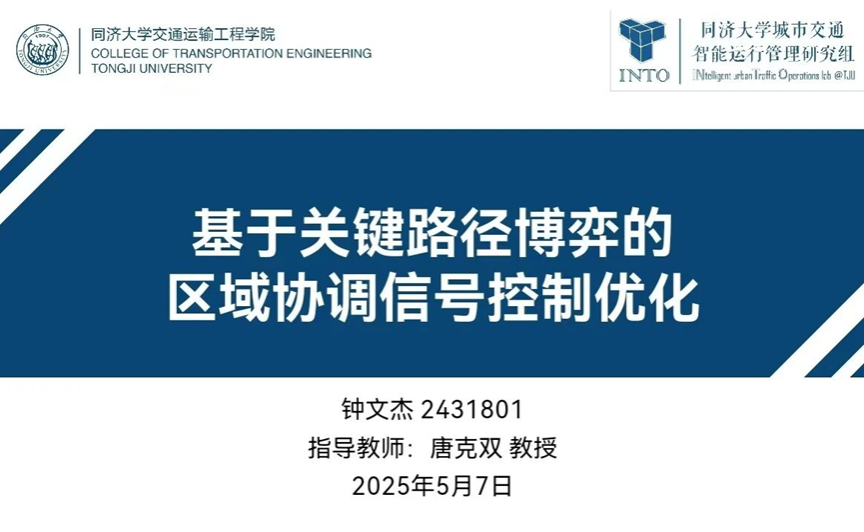 钟文杰同学从研究技术路线、实验结果及后续计划三个方面介绍了其《基于关键路径博弈的区域协调信号控制优化》的最新进展,重点介绍了当前的研究技术路线以及模型实验结果对比。