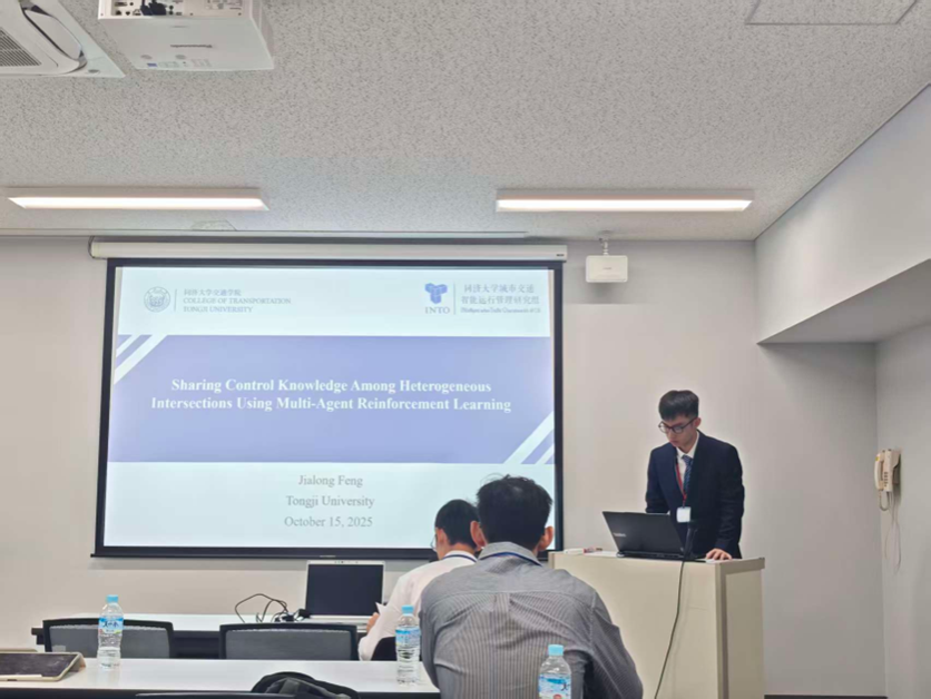 冯嘉龙作“Sharing Control Knowledge Among Heterogeneous Intersections Using Multi-Agent Reinforcement Learning”报告,提出多智能体强化学习框架下的控制知识迁移思路,探讨不同配时逻辑、不同几何结构、不同交通负荷水平的路口之间,如何实现控制策略的可复用与可共享,从而减少单点反复训练和现场长期整定的成本。